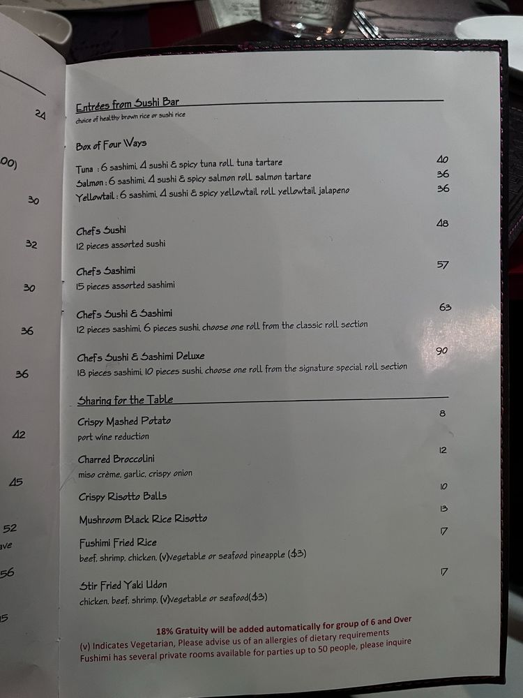 Introducing the menu at Fushimi Bay Ridge, a Japanese lounge and sushi bar in Brooklyn, NY. This trendy spot offers a variety of vegan and vegetarian options, as well as wheelchair accessibility and free Wi-Fi. With a full bar, outdoor seating, and a pool table, it's perfect for groups or a night out. Customers rave about the fresh and delicious sushi, with options like Chef's Sushi and Sashimi sets, and unique dishes like filet mignon. The attentive service and beautiful decor make for a memorable dining experience. Don't miss out on the happy hour specials and try the espresso martini for a treat. Fushimi Bay Ridge is a must-visit destination for those craving top-notch Japanese cuisine in a lively atmosphere.