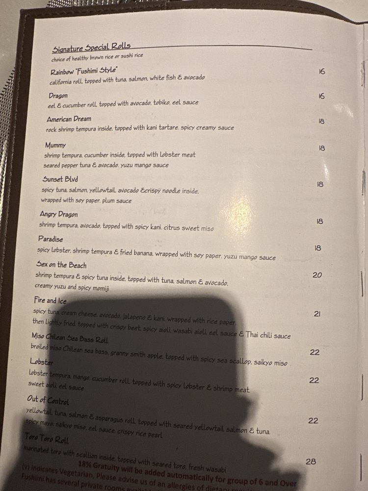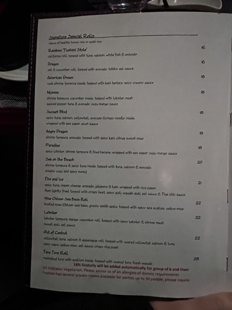 pieces sashimi, pieces sushi, choose one roll from the signature special roll section